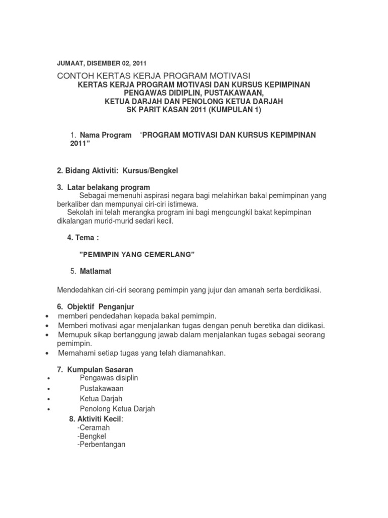 Contoh Kertas Kerja Program Motivasi Pengawas Pdf